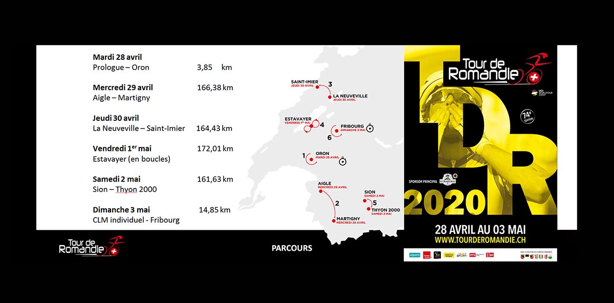 En 2020, cette 1 étape aurait dû emprunter le circuit final des championnats du monde entre aigle et martigny sur un parcours de 166 km.